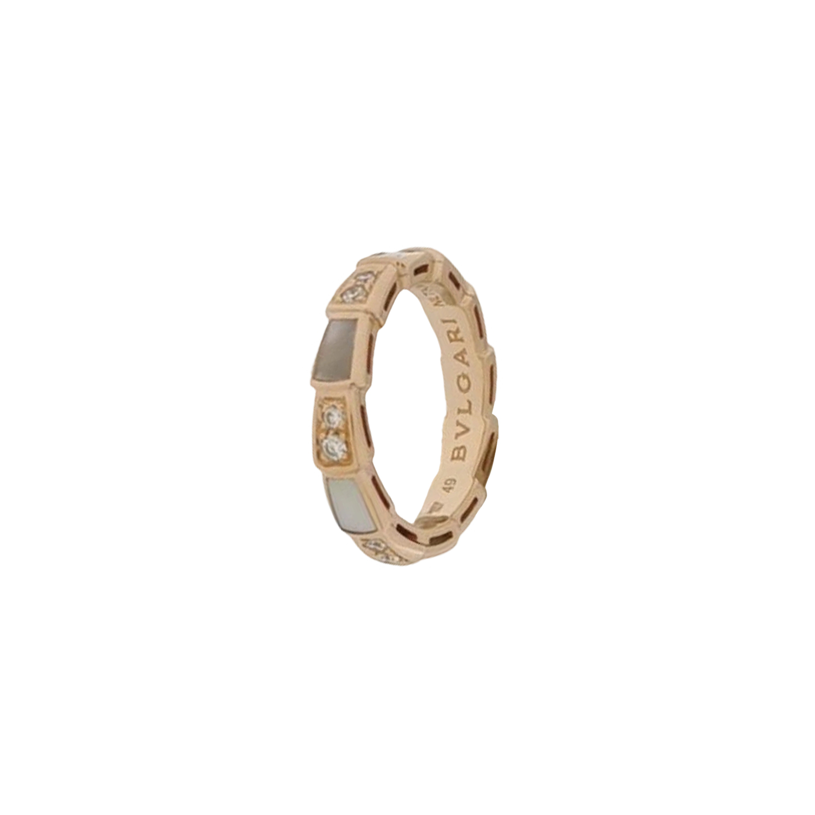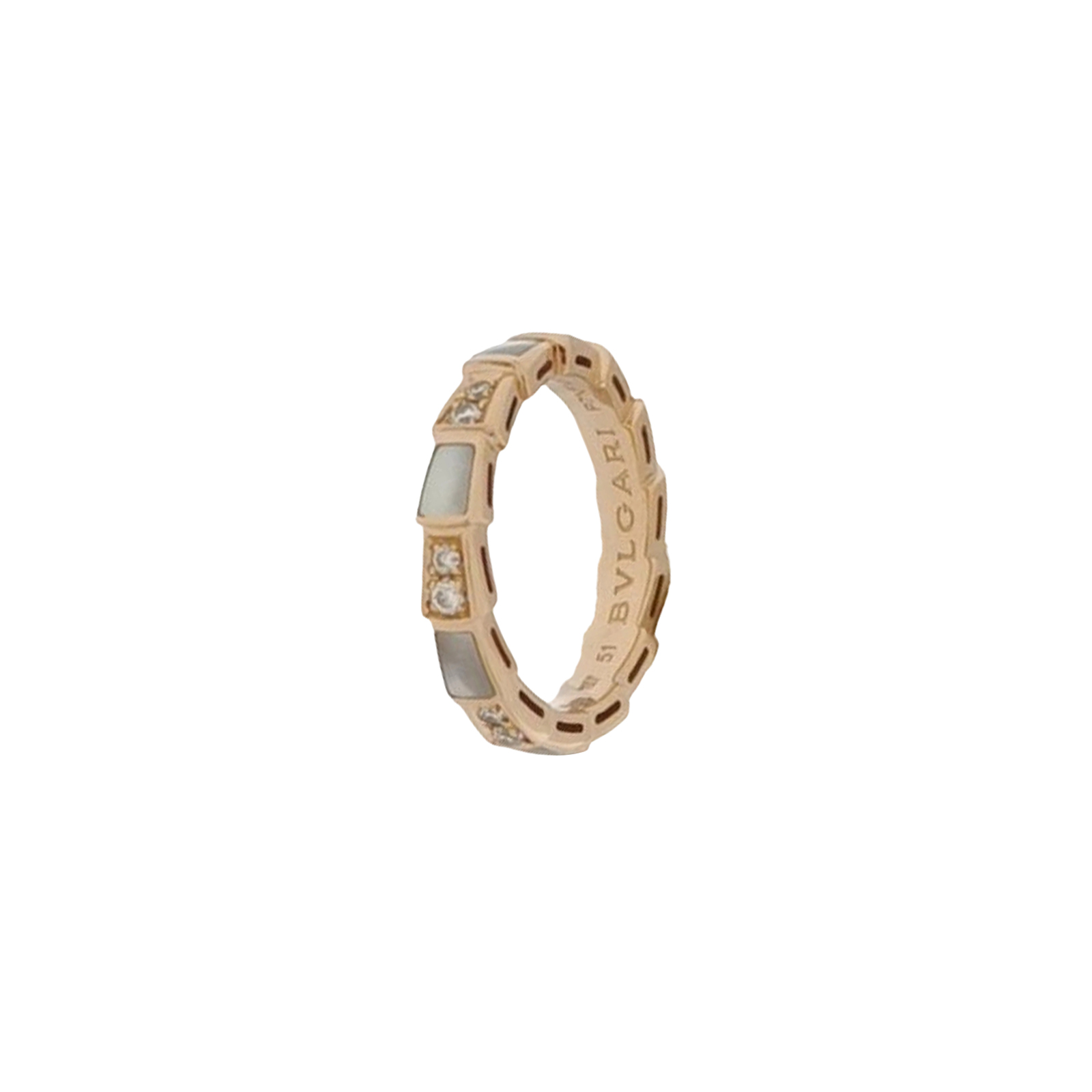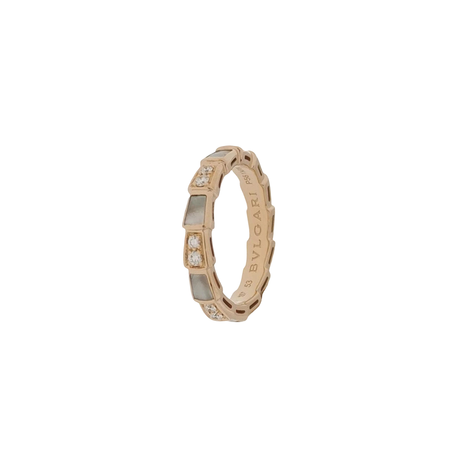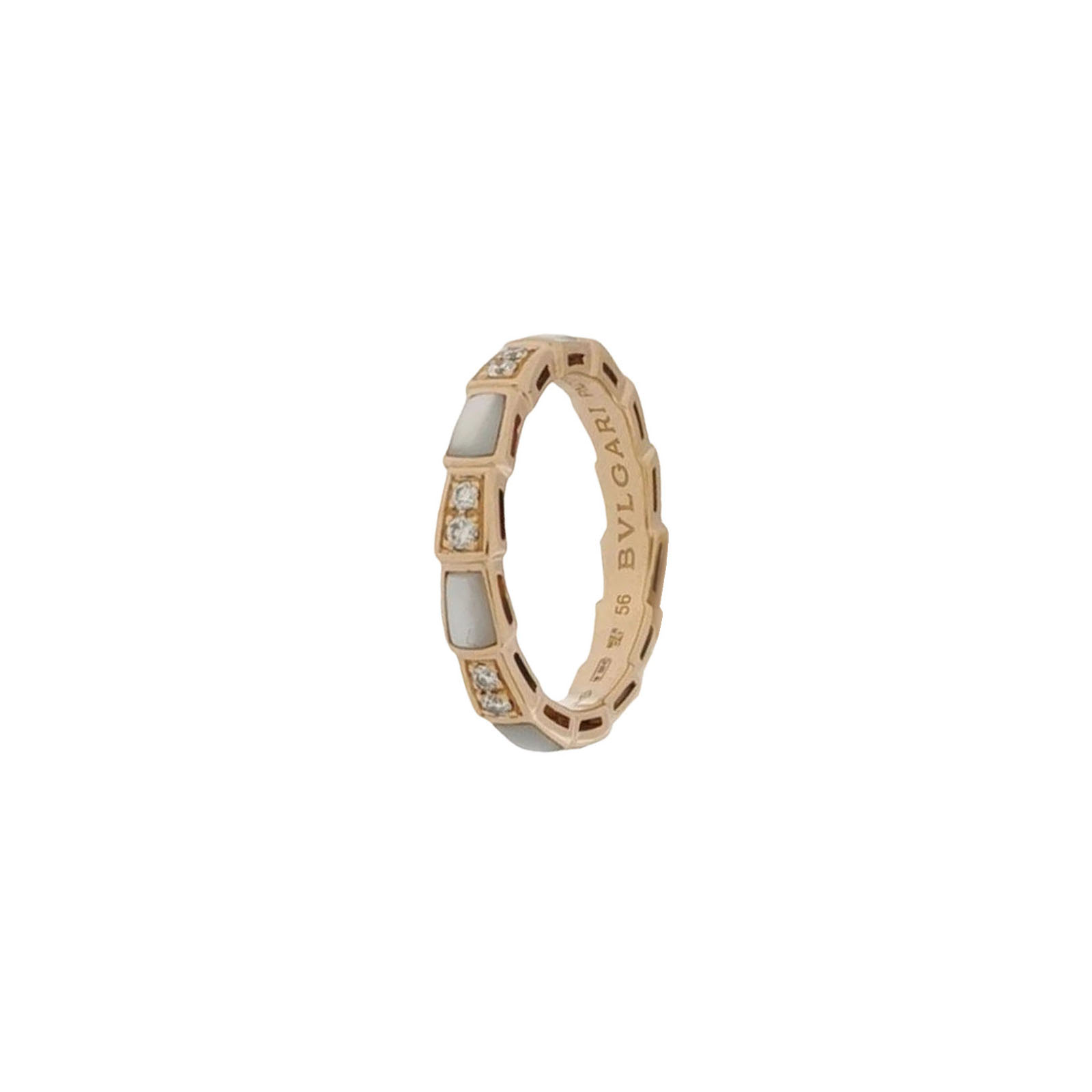 Serpenti Viper系列18K玫瑰金钻石贝母戒指17码
