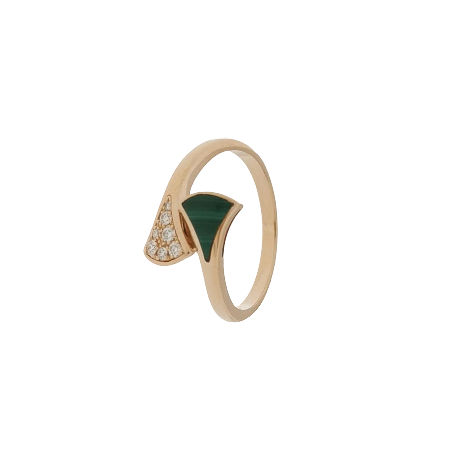 Divas' Dream18K玫瑰金钻石孔雀石扇子戒指18码