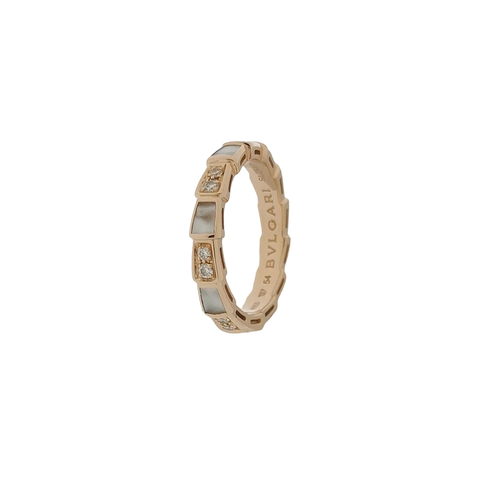 Serpenti Viper系列18K玫瑰金钻石贝母戒指15码