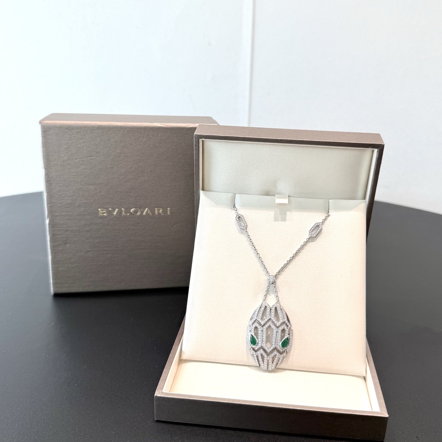 Serpenti Seduttori鎏光蛇影18K白金钻石祖母绿项链