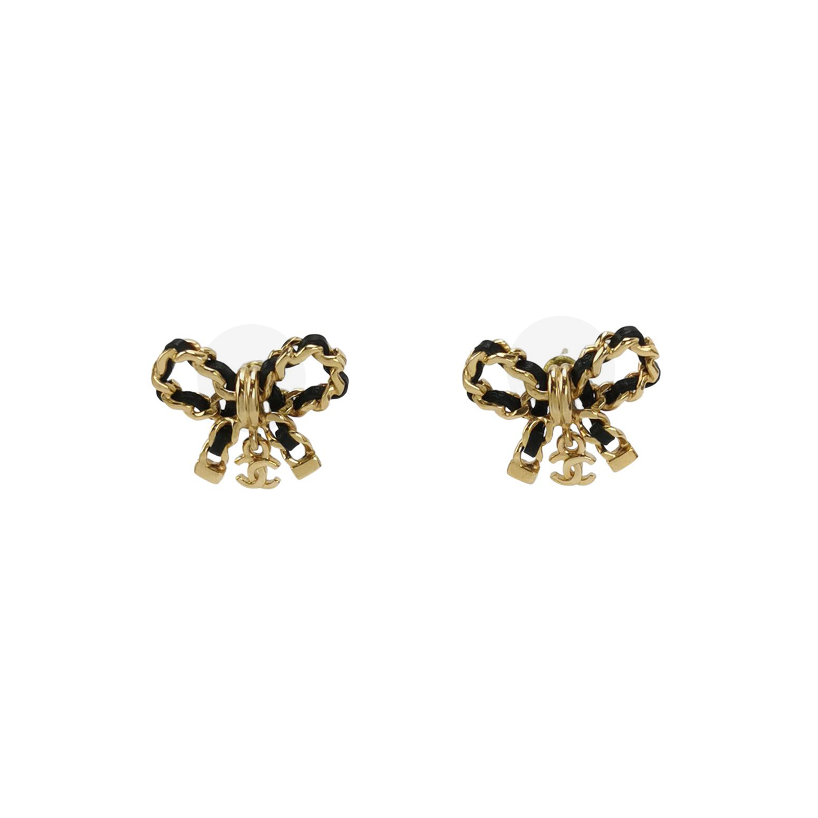 (22A)皮质蝴蝶结双C logo耳钉