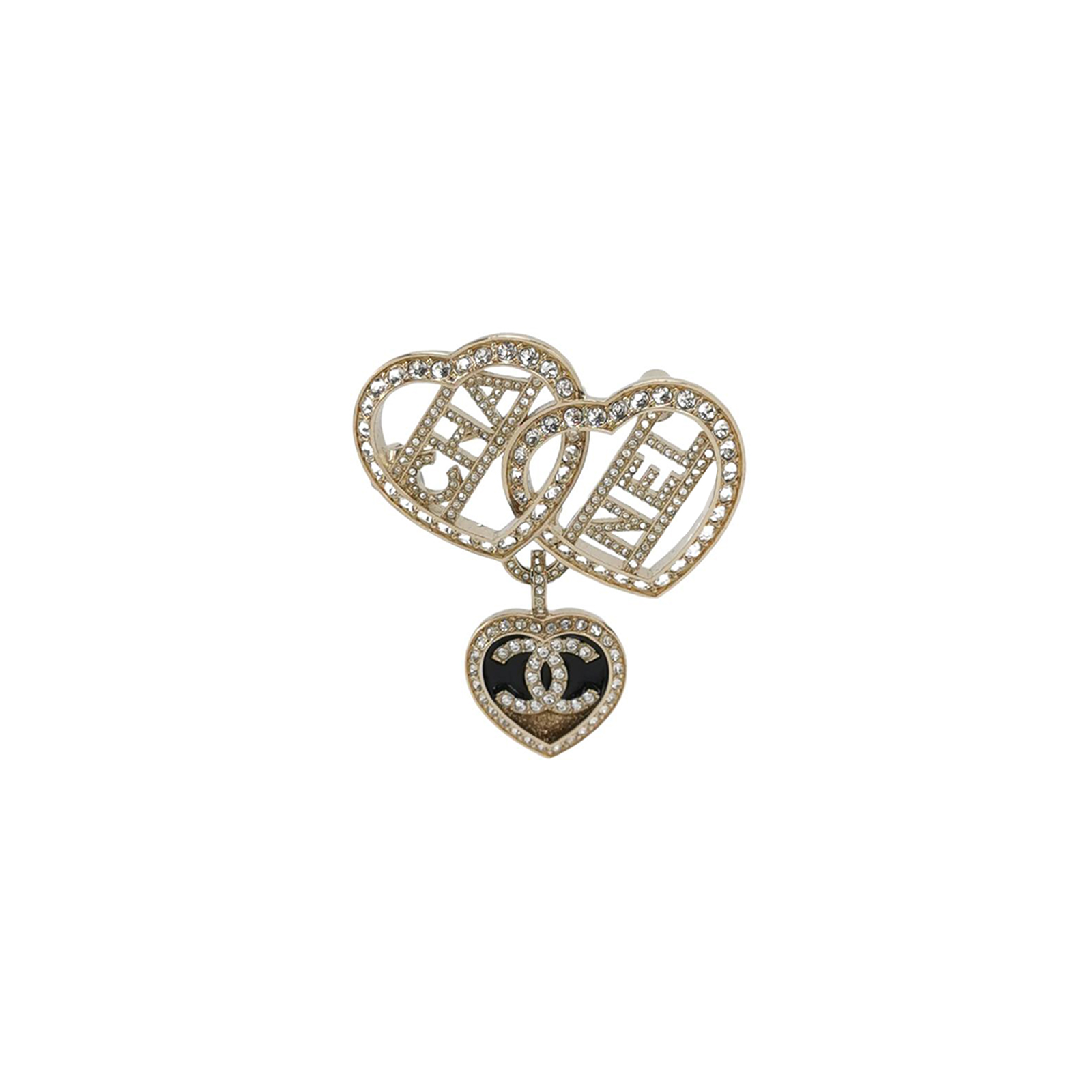 仿水晶爱心字母双C Logo胸针