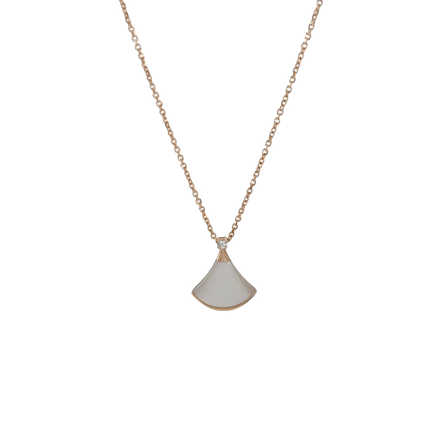 Divas' Dream18K玫瑰金钻石贝母扇子项链