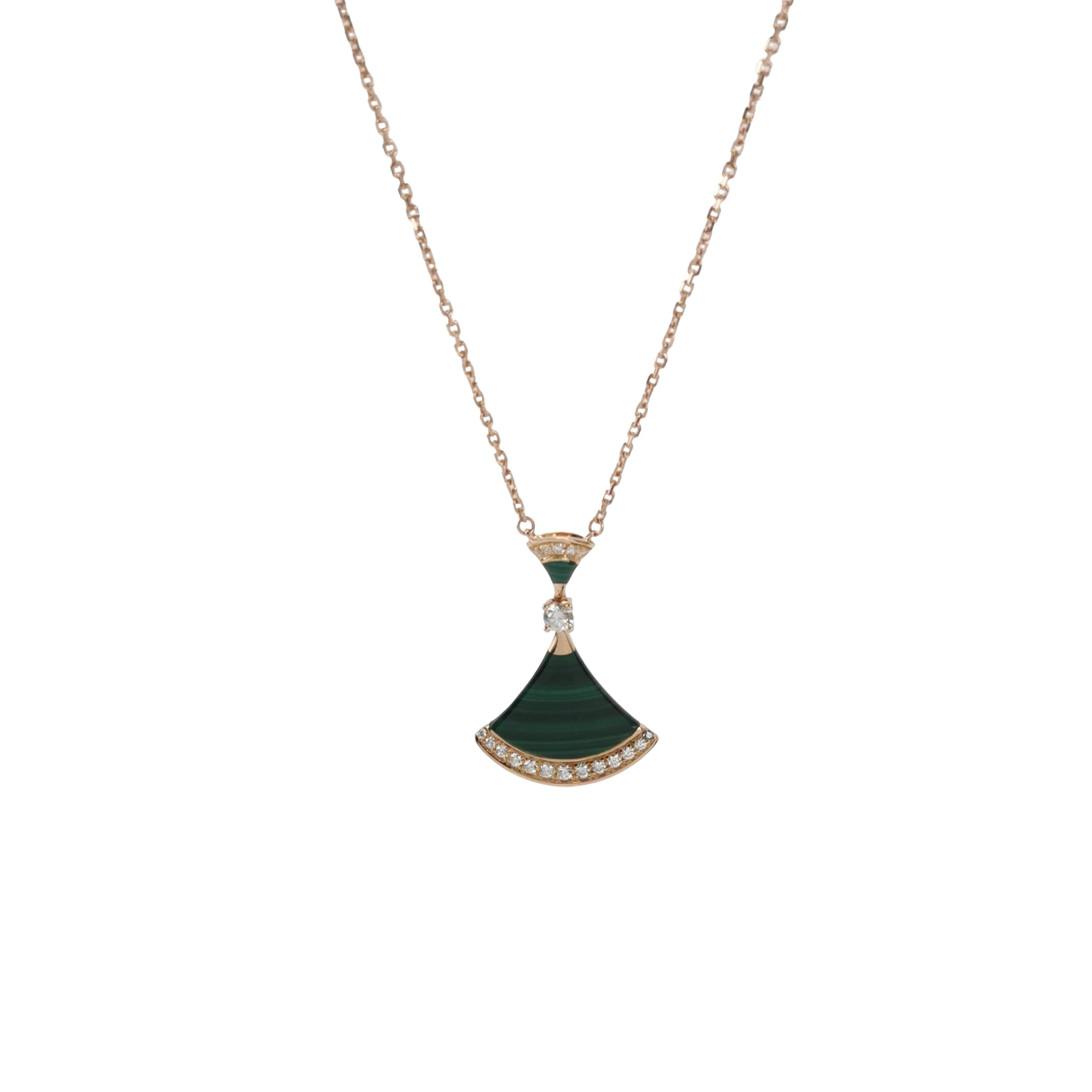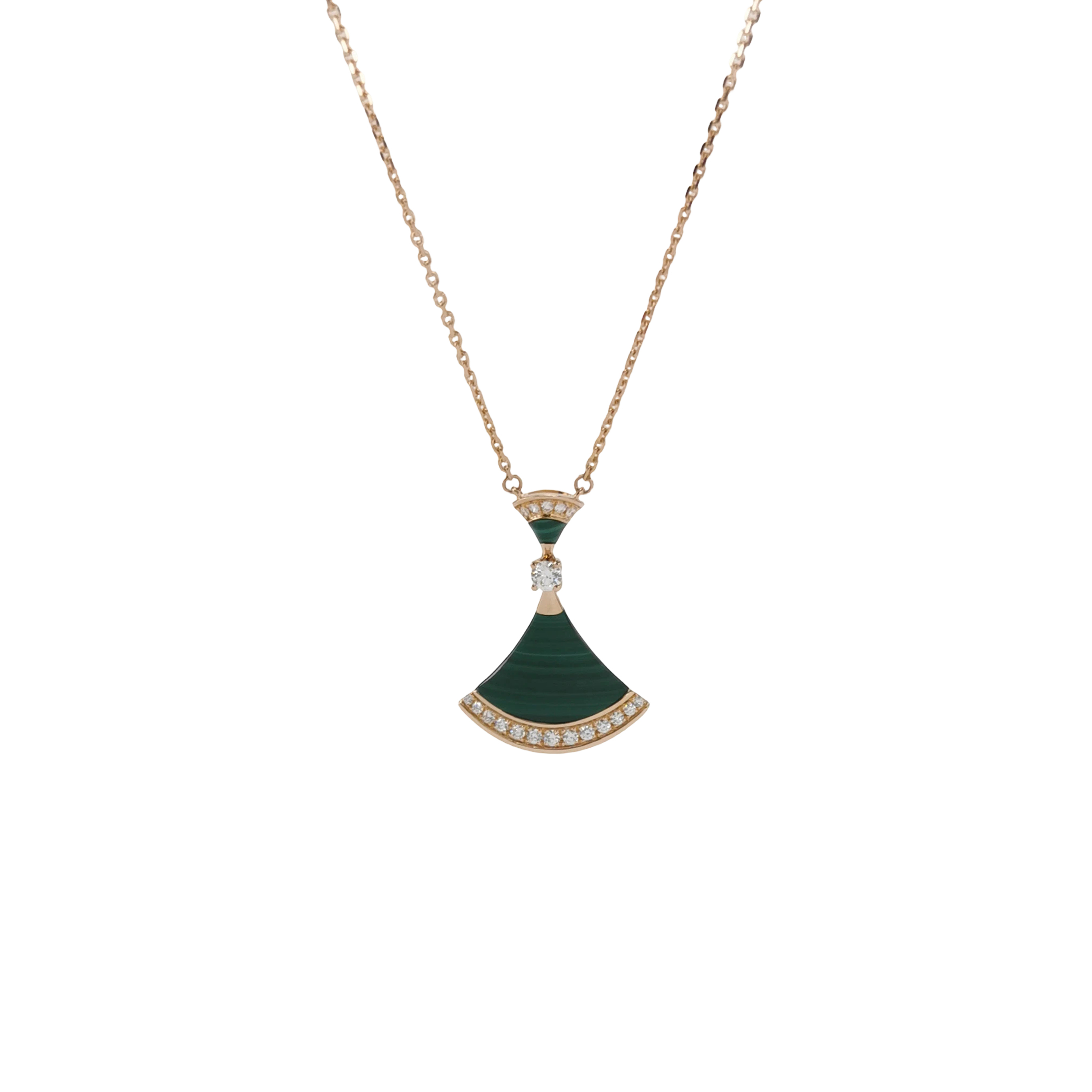 Divas' Dream18K玫瑰金钻石孔雀石扇子项链