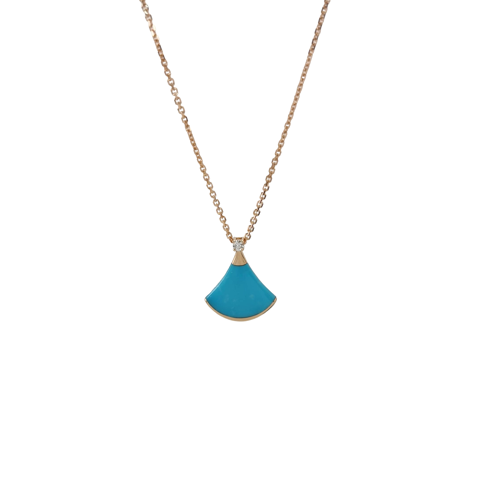 Divas' Dream18K玫瑰金钻石绿松石扇子项链