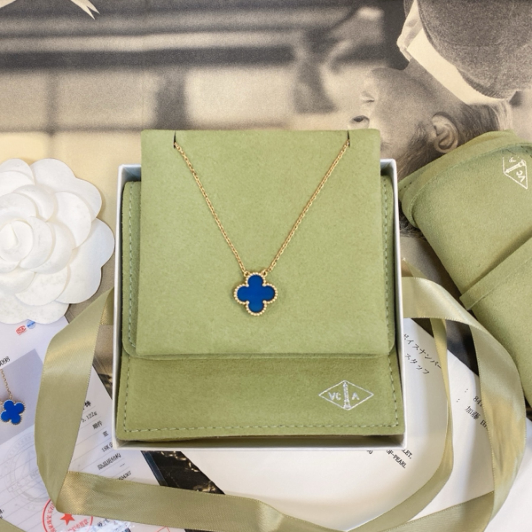Vintage Alhambra18K黄金孔雀石项链