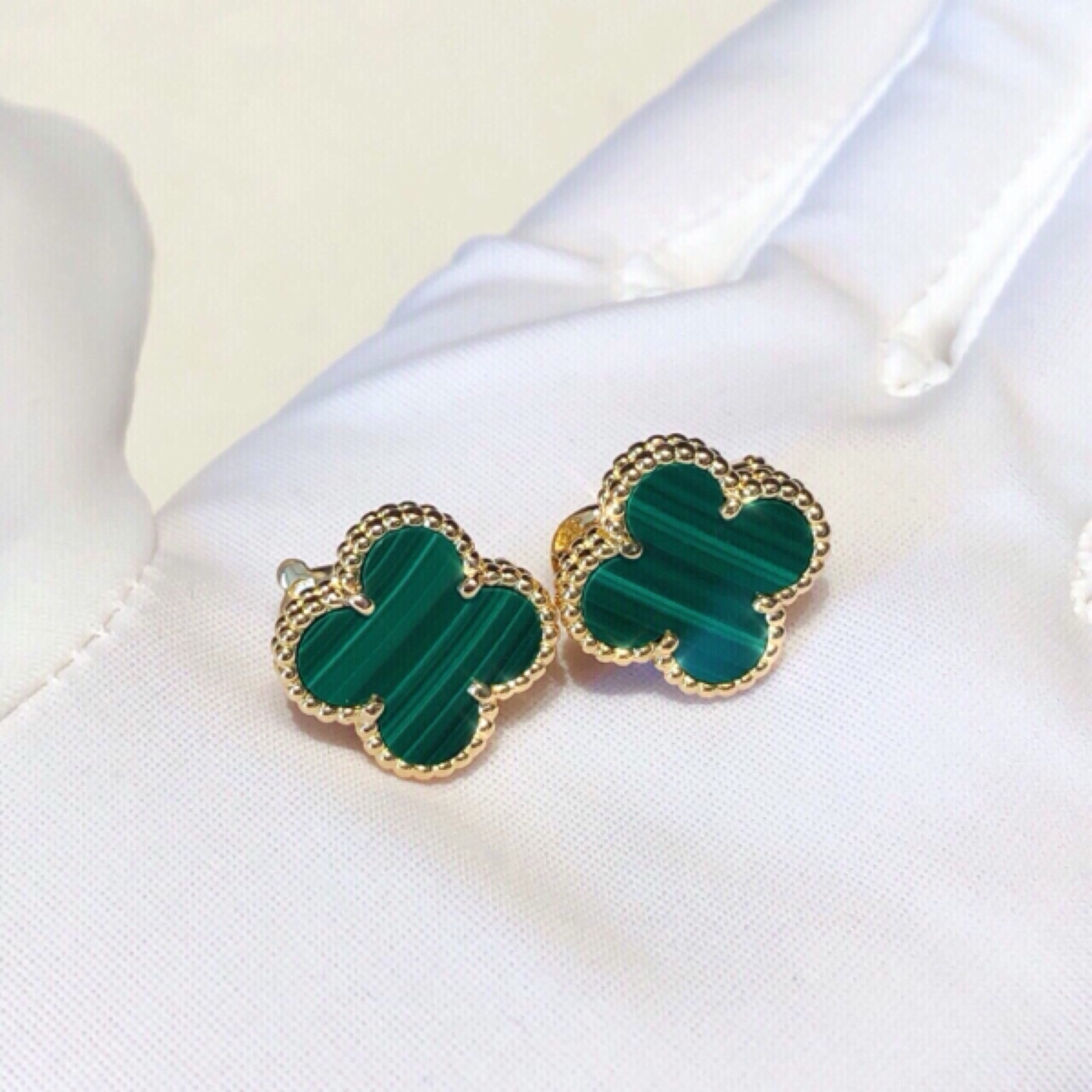 Vintage Alhambra18K黄金孔雀石耳钉