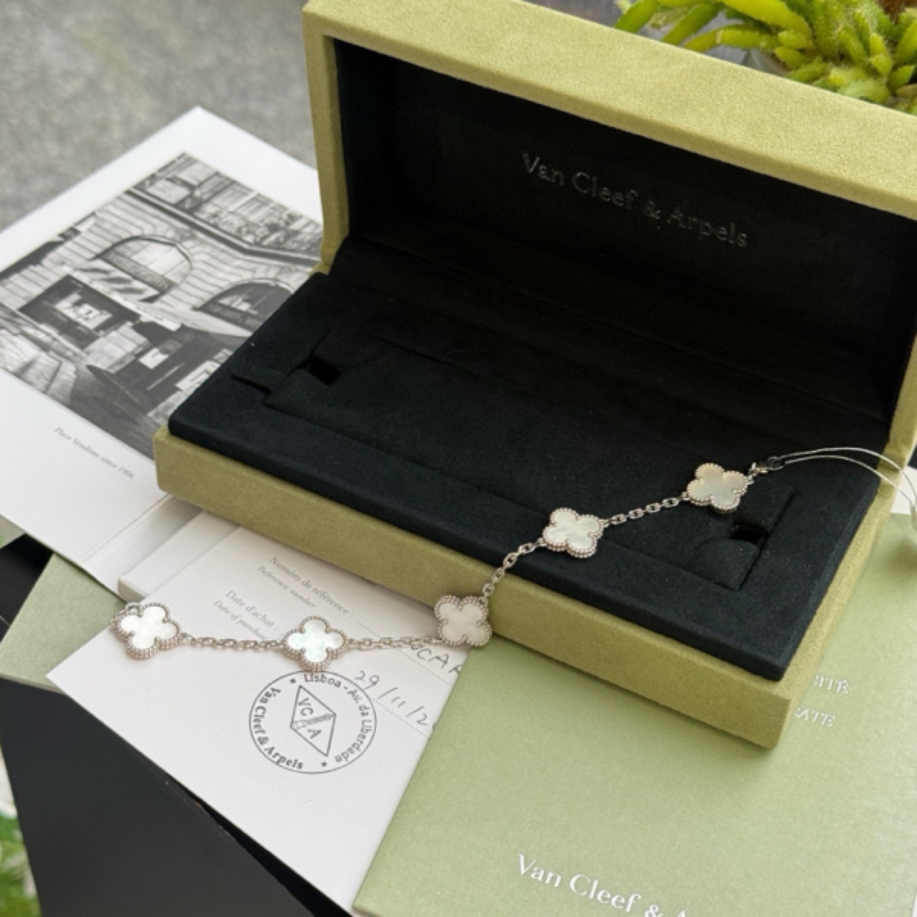 Vintage Alhambra18K白金珍珠母贝五花手链
