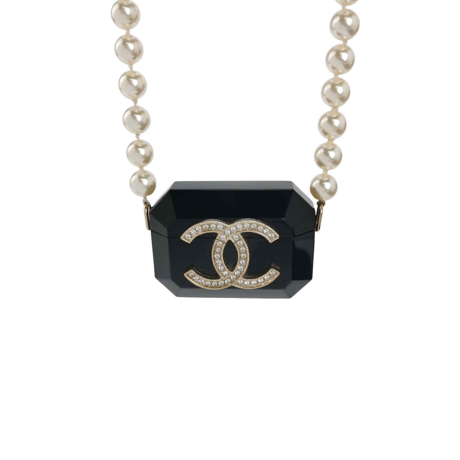 (21A)仿珍珠皮质仿水晶字母双C耳机包项链