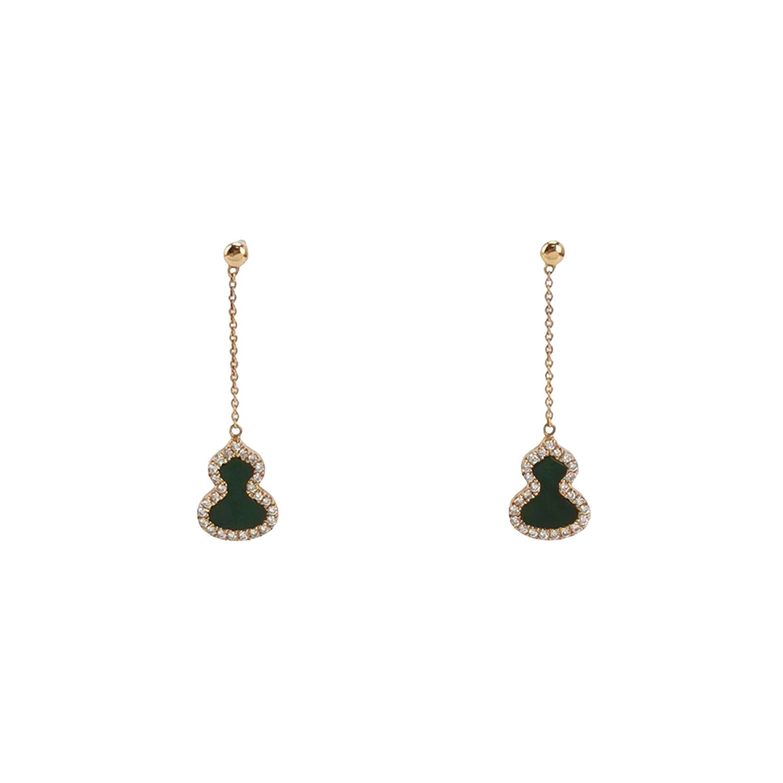 Wulu18K玫瑰金钻石翡翠葫芦耳钉