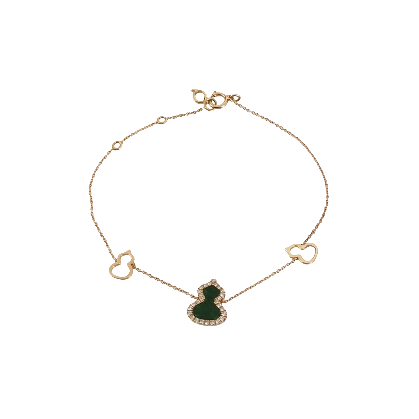 Wulu18K玫瑰金钻石翡翠葫芦手链