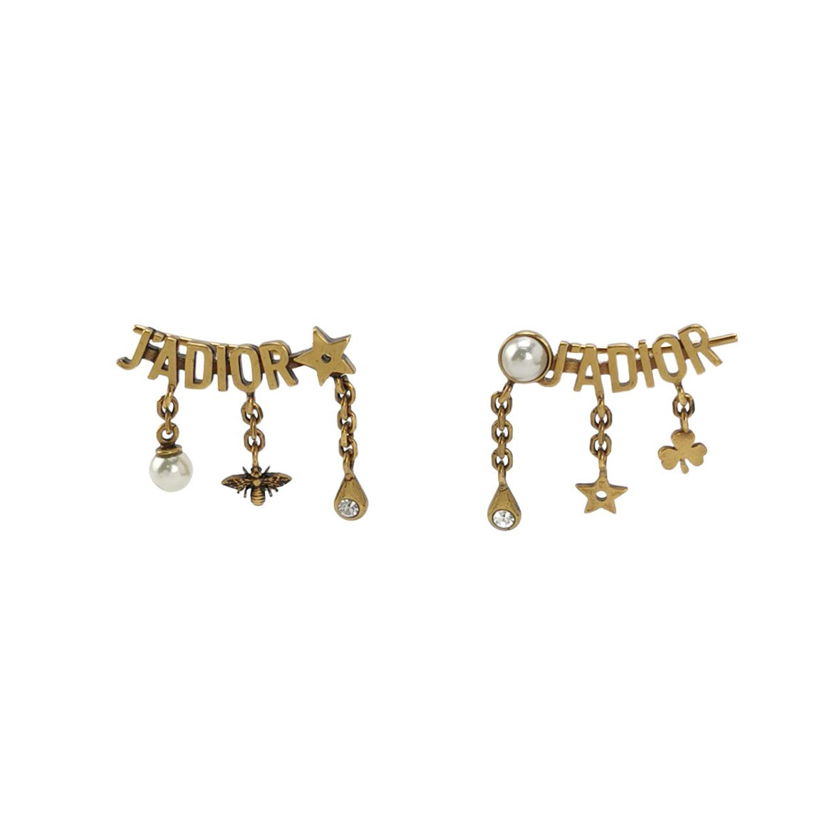 J'Adior仿水晶仿珍珠字母Logo耳环
