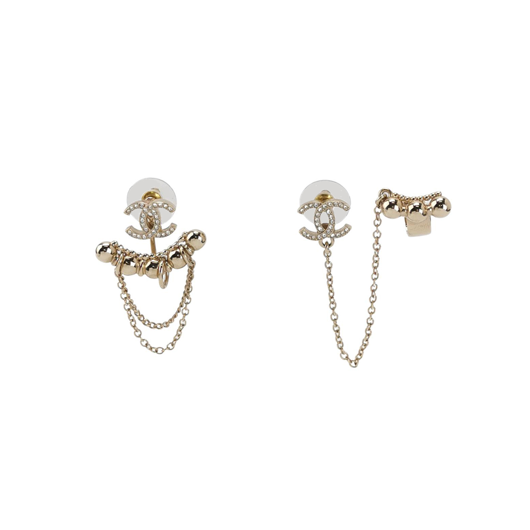 (21V)仿水晶双C四叶草香水瓶耳钉