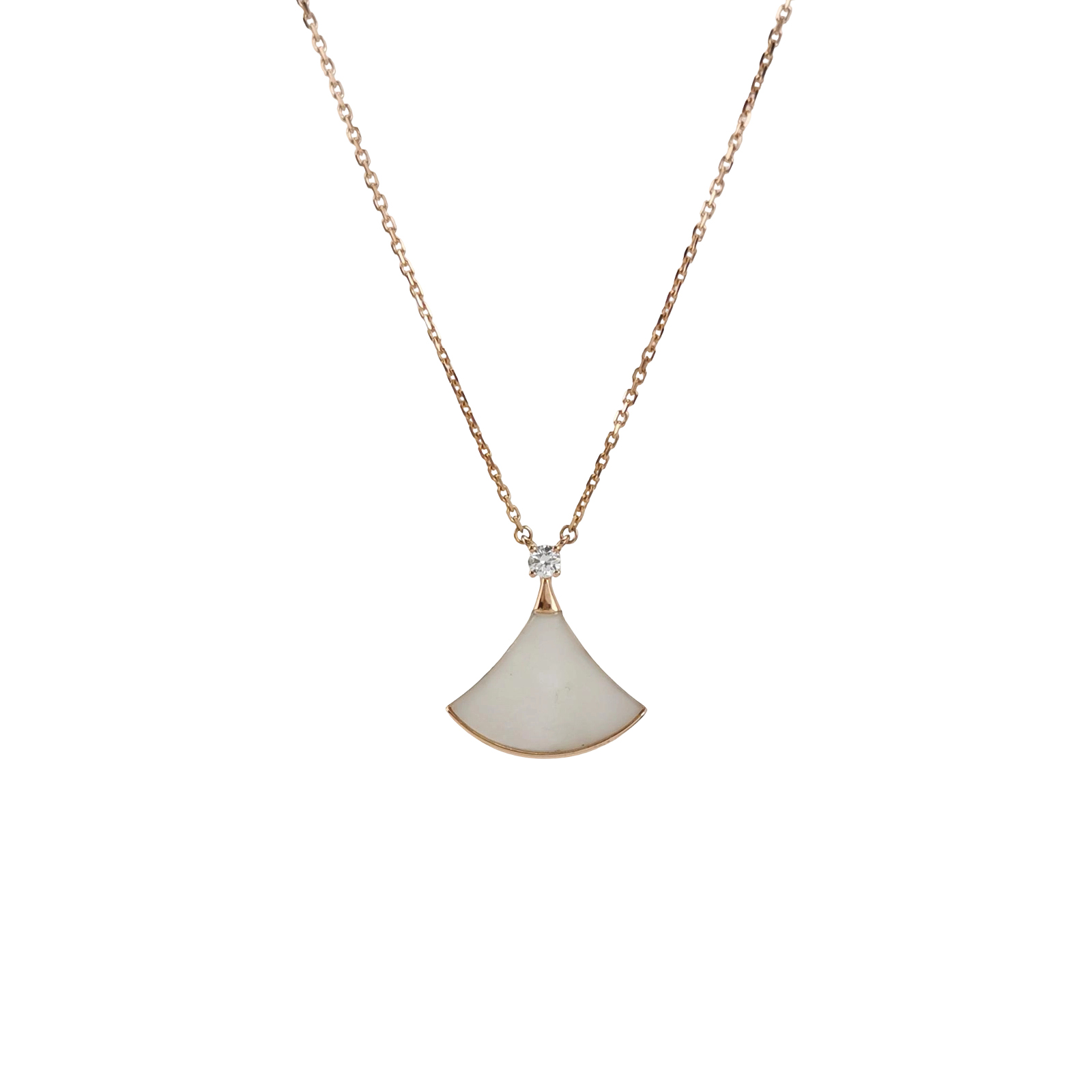 Divas' Dream18K玫瑰金钻石贝母扇子项链