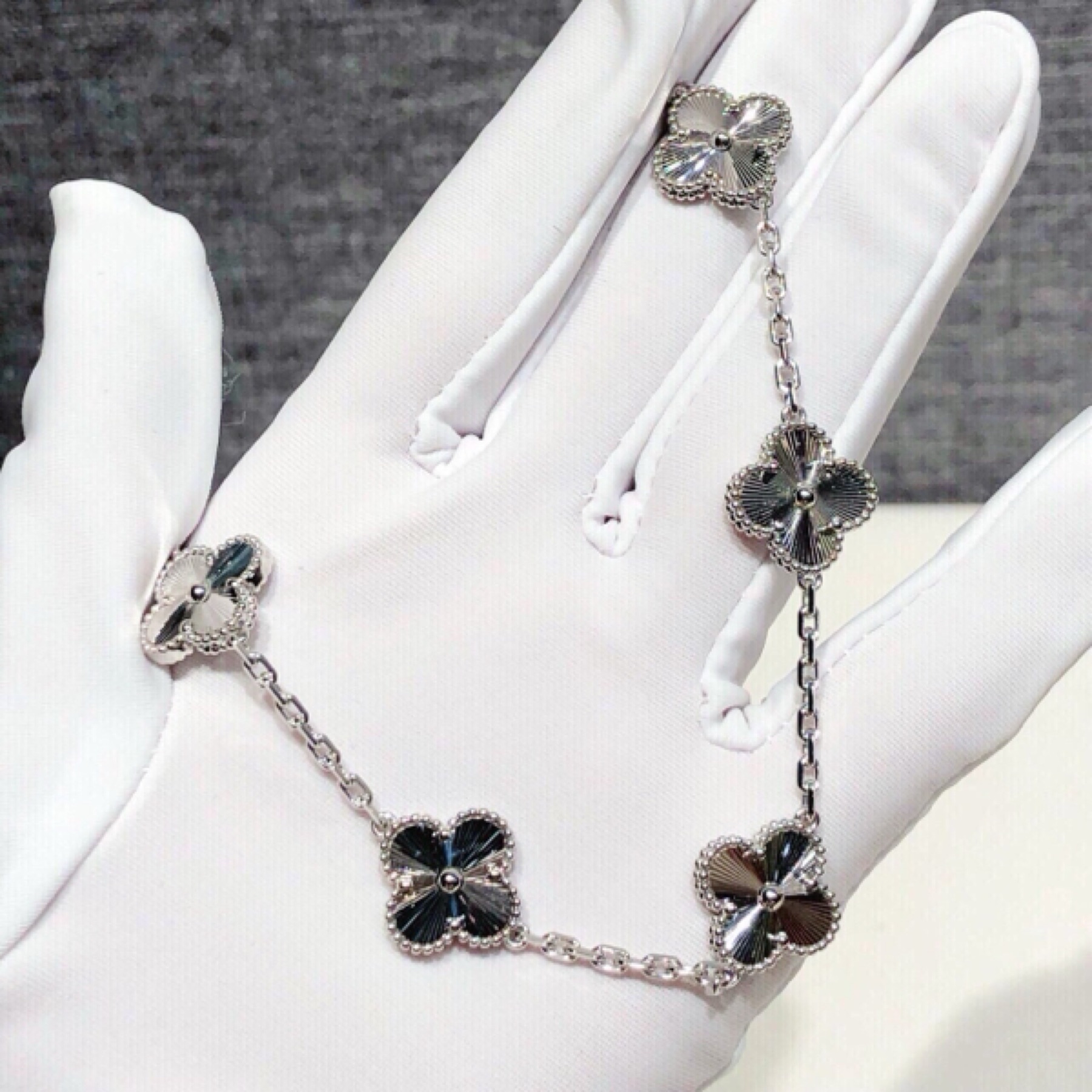 Vintage Alhambra18K白金四叶草手链