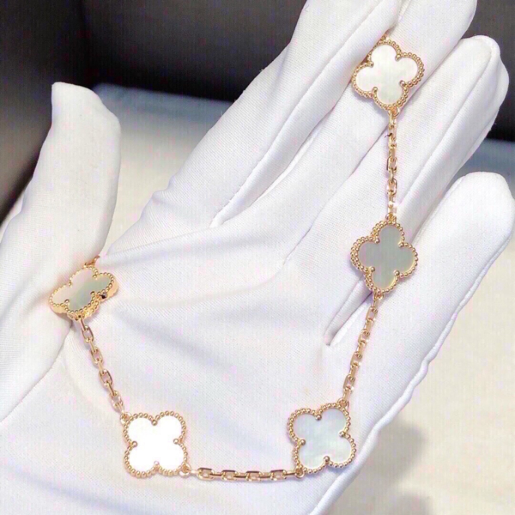 Vintage Alhambra18K黄金贝母四叶草手链