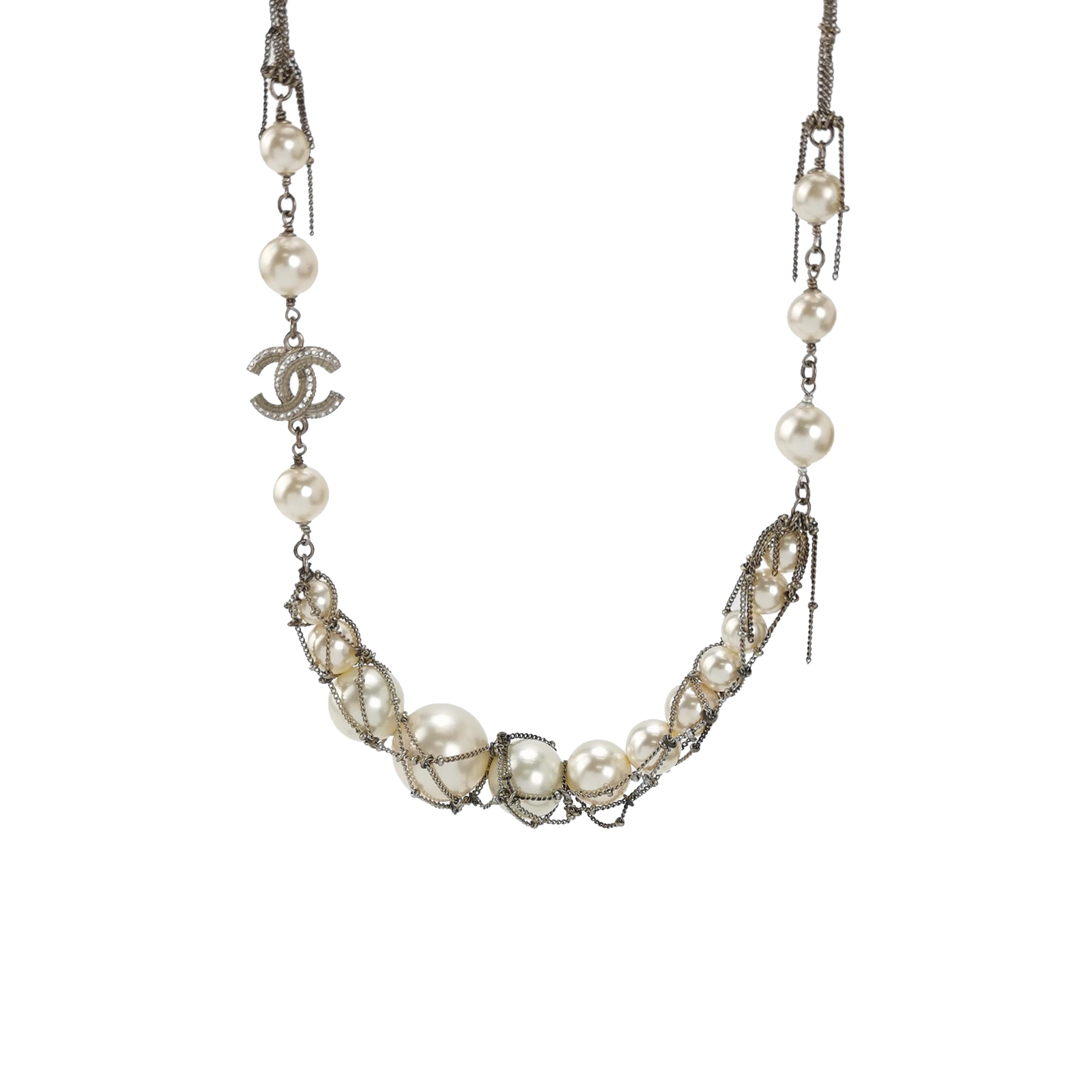 (14K)仿水晶仿珍珠字母双C项链