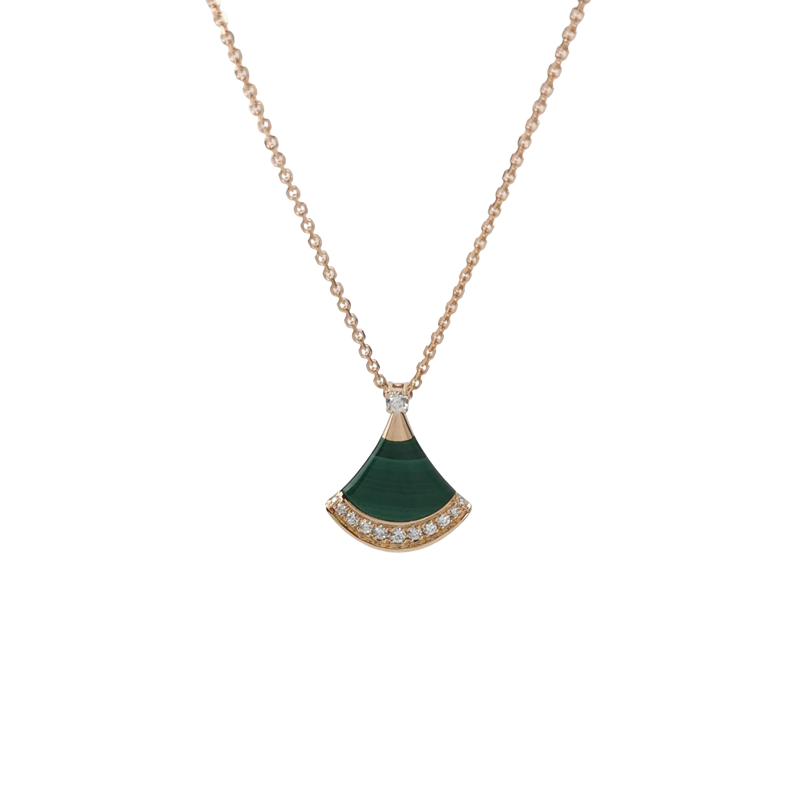 Divas' Dream18K玫瑰金钻石孔雀石扇子项链