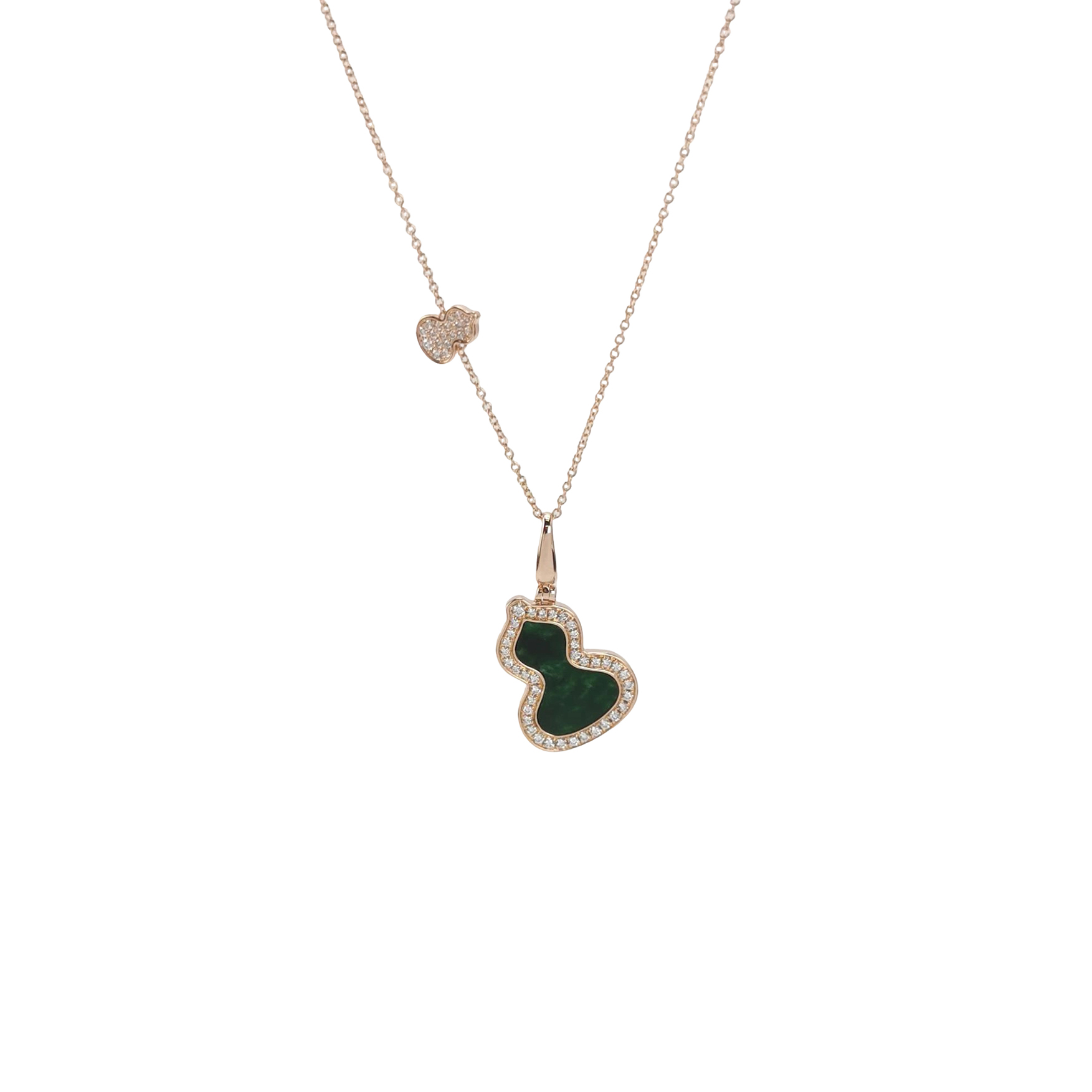 Wulu18K玫瑰金钻石翡翠葫芦项链