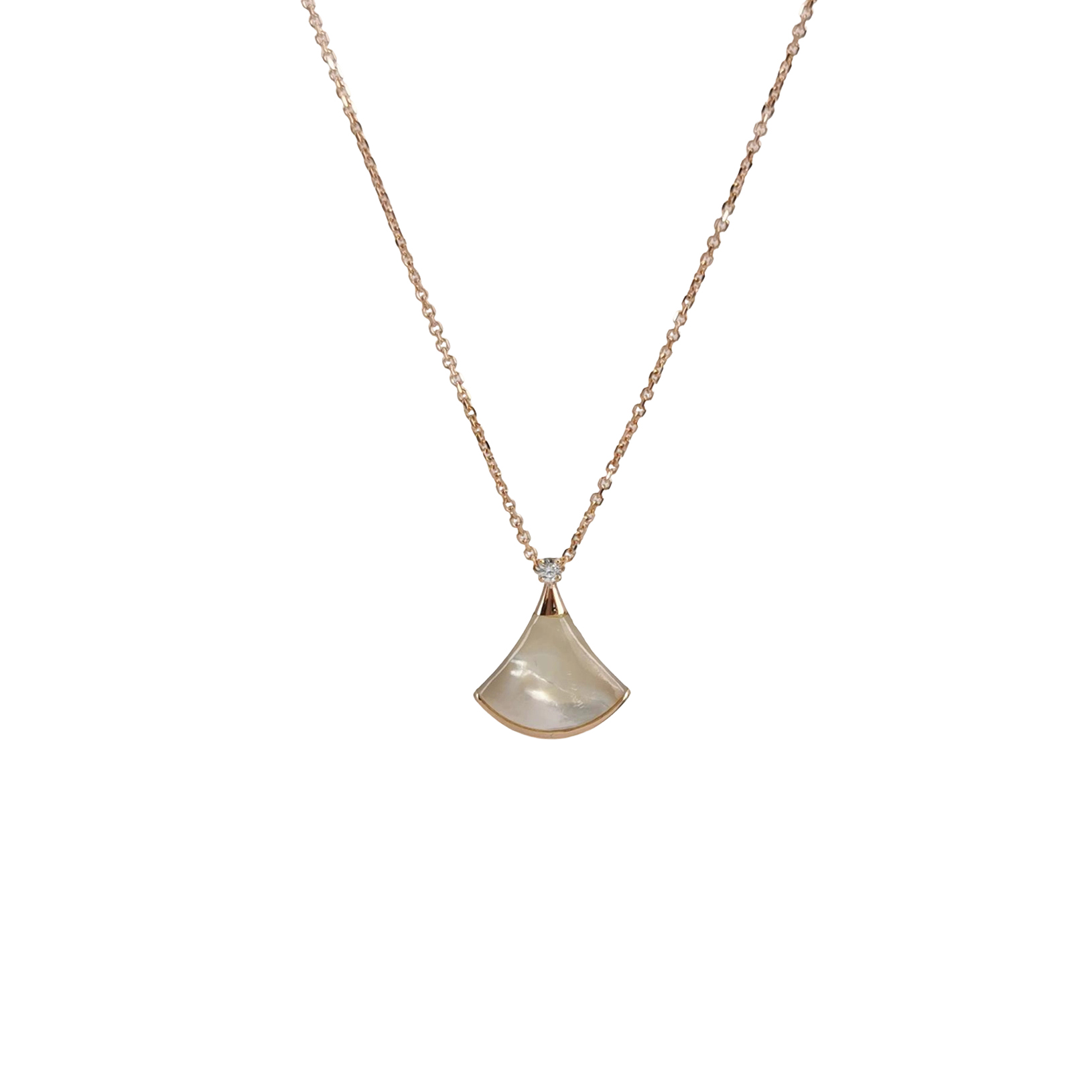Divas' Dream18K玫瑰金钻石贝母扇子项链