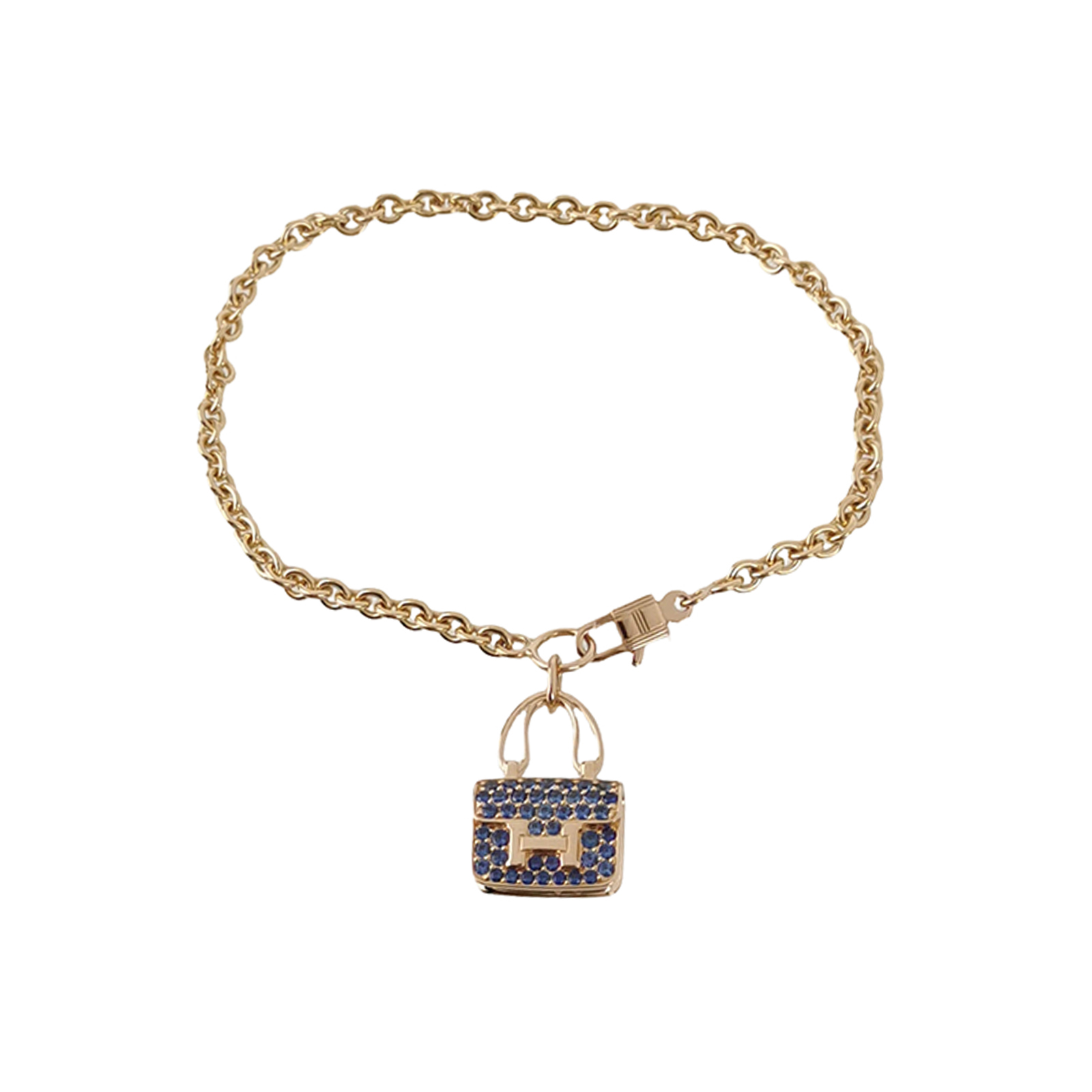 Amulettes Constance18K玫瑰金蓝宝石包包造型吊坠手链