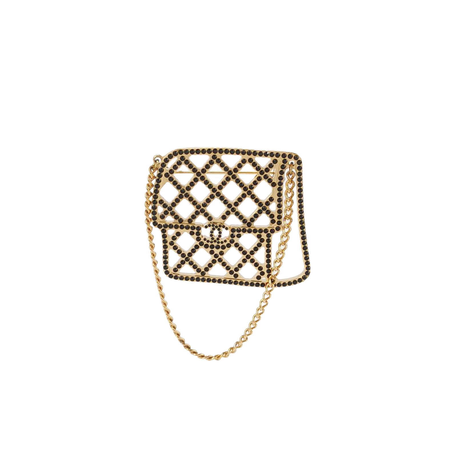 (17A)仿水晶包袋造型双C logo镂空胸针