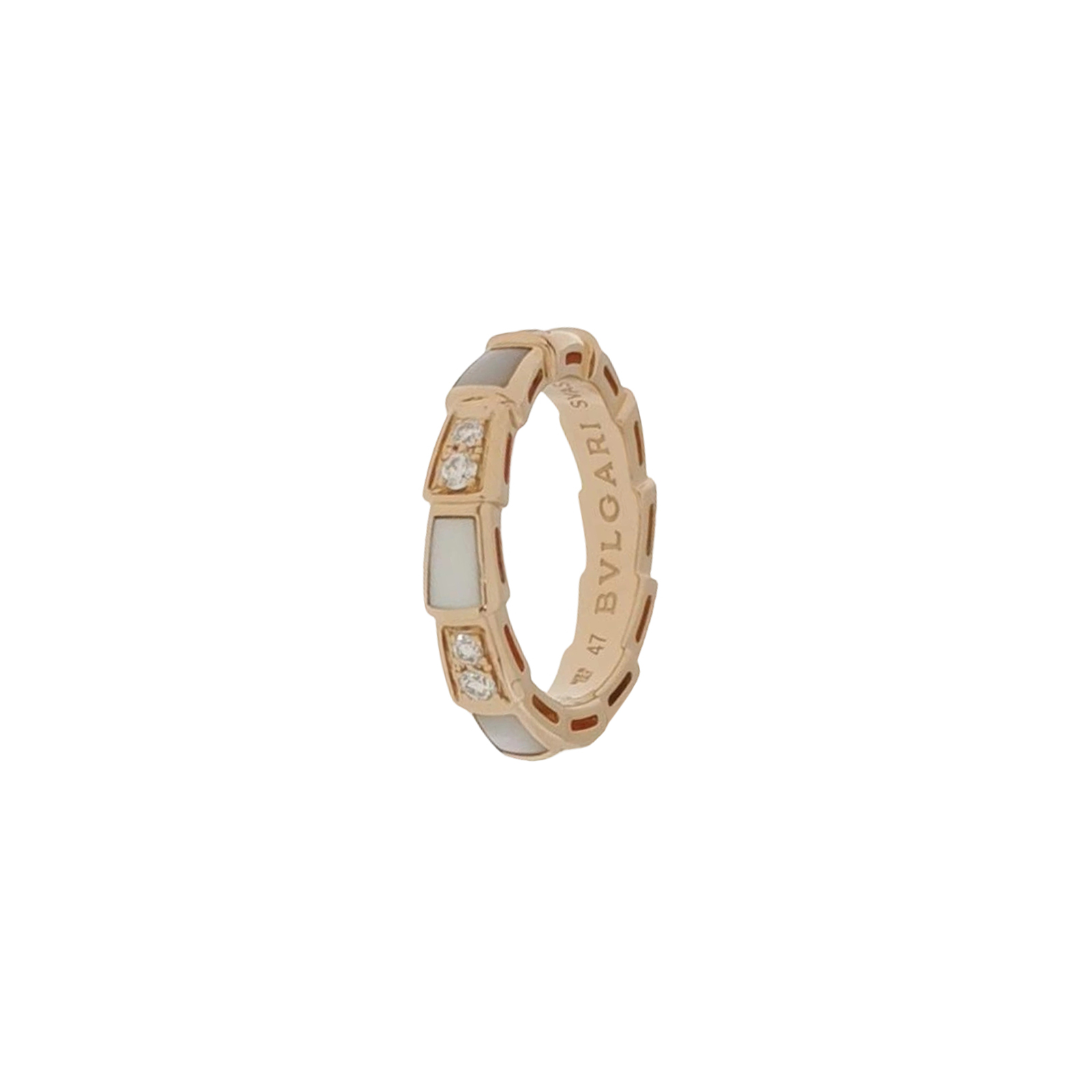 Serpenti Viper系列18K玫瑰金钻石贝母戒指8码