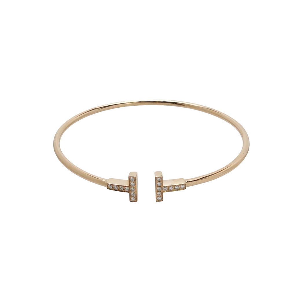 Tiffany T18K玫瑰金钻石线圈手镯