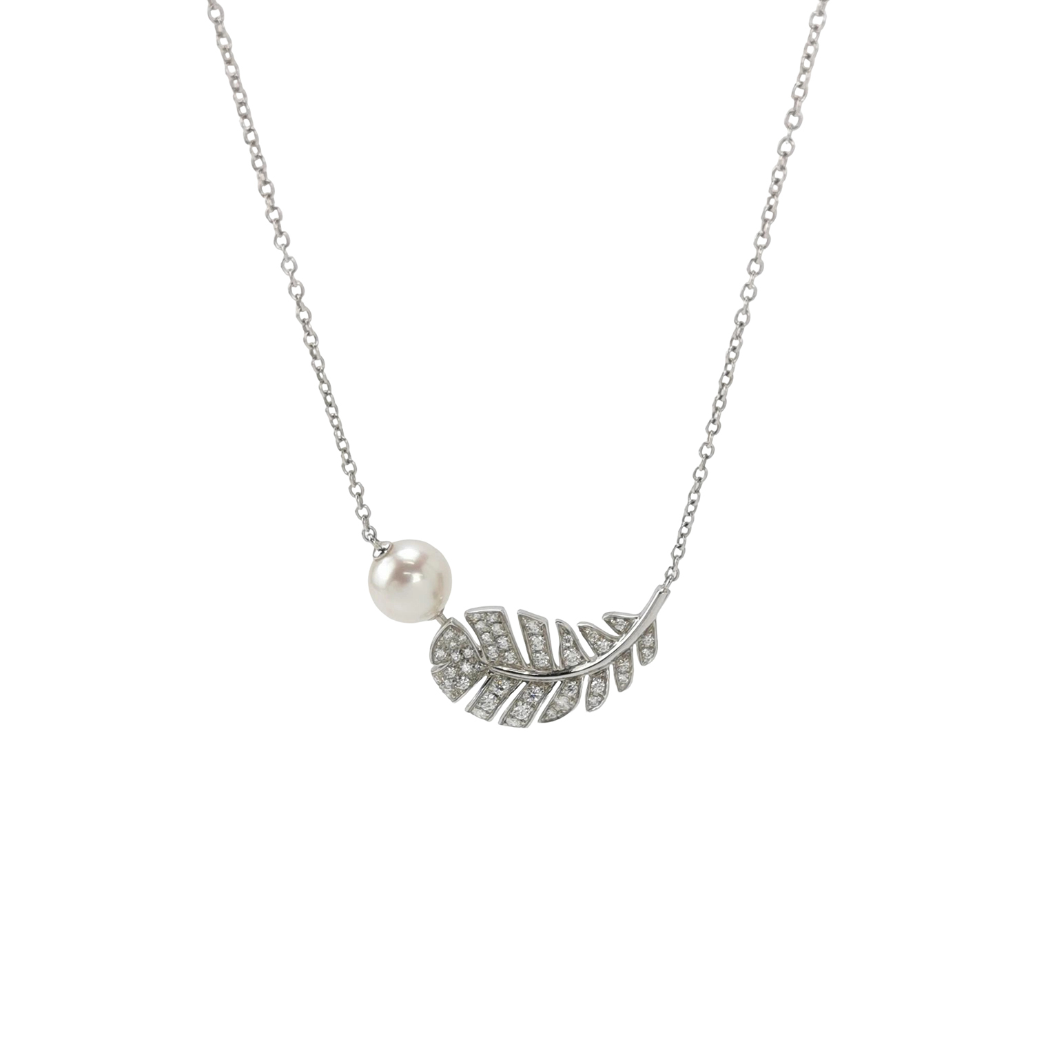 Plume de Chanel18K白金钻石珍珠羽毛项链