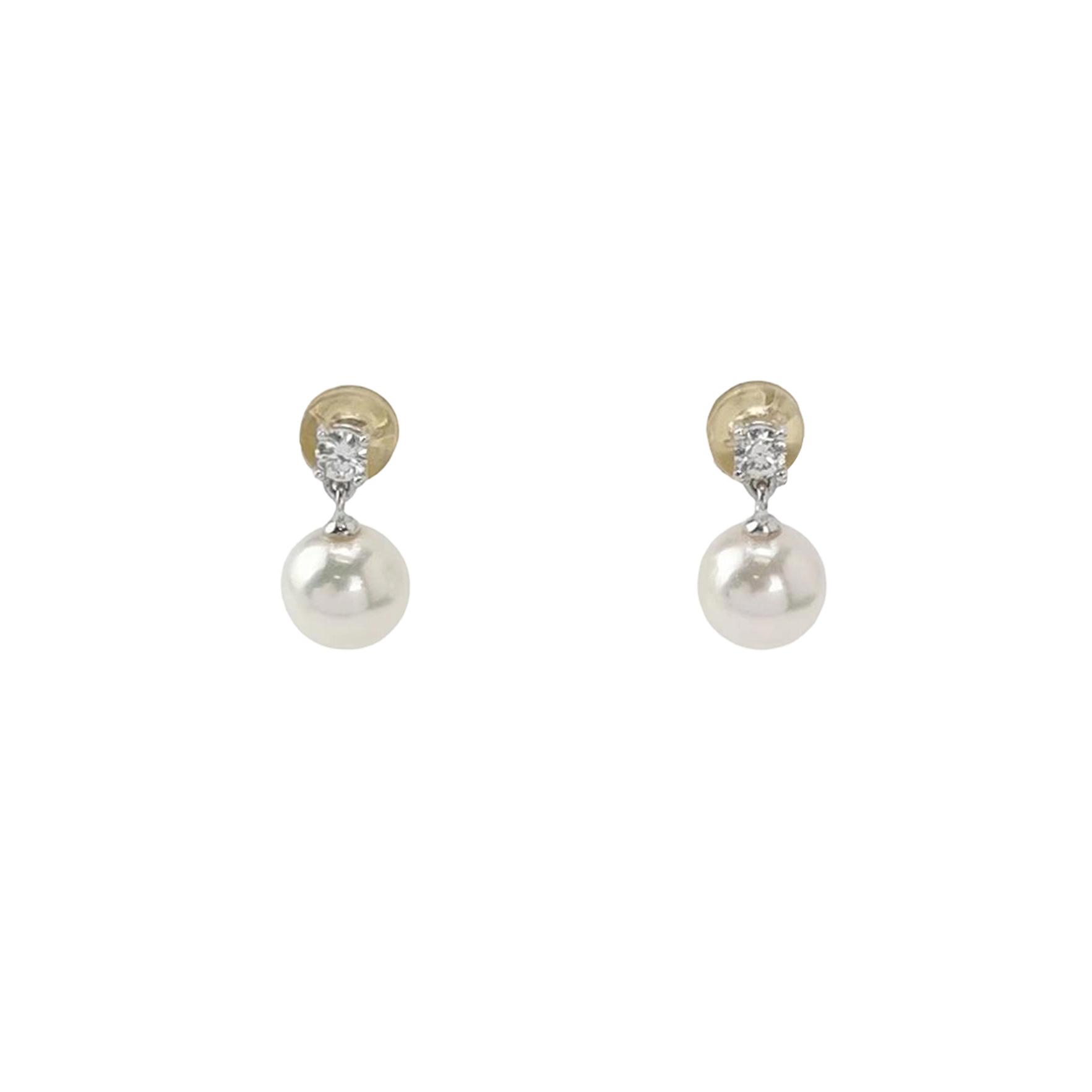 Basic18K白金钻石珍珠耳钉