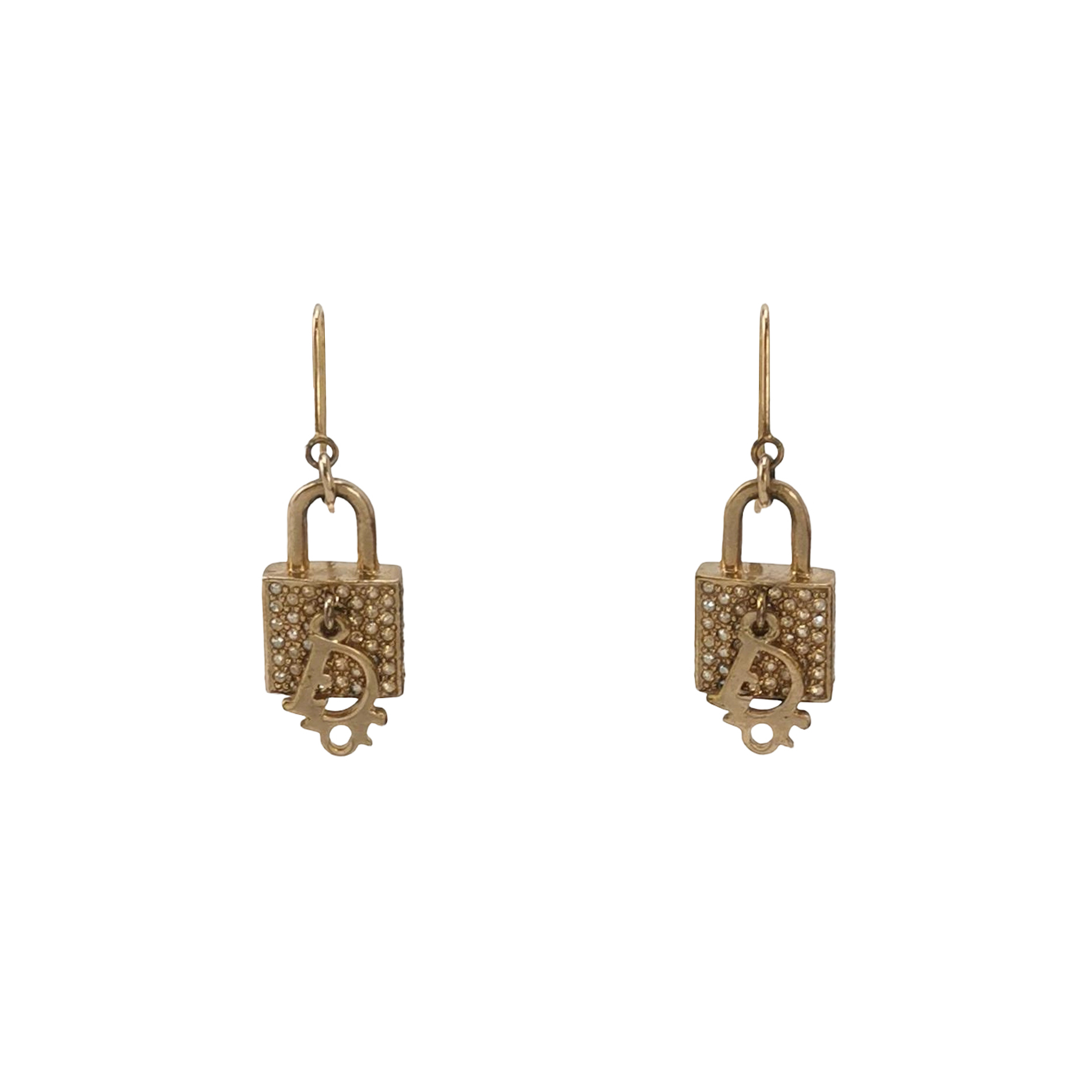 仿水晶锁头造型字母Logo中古耳环