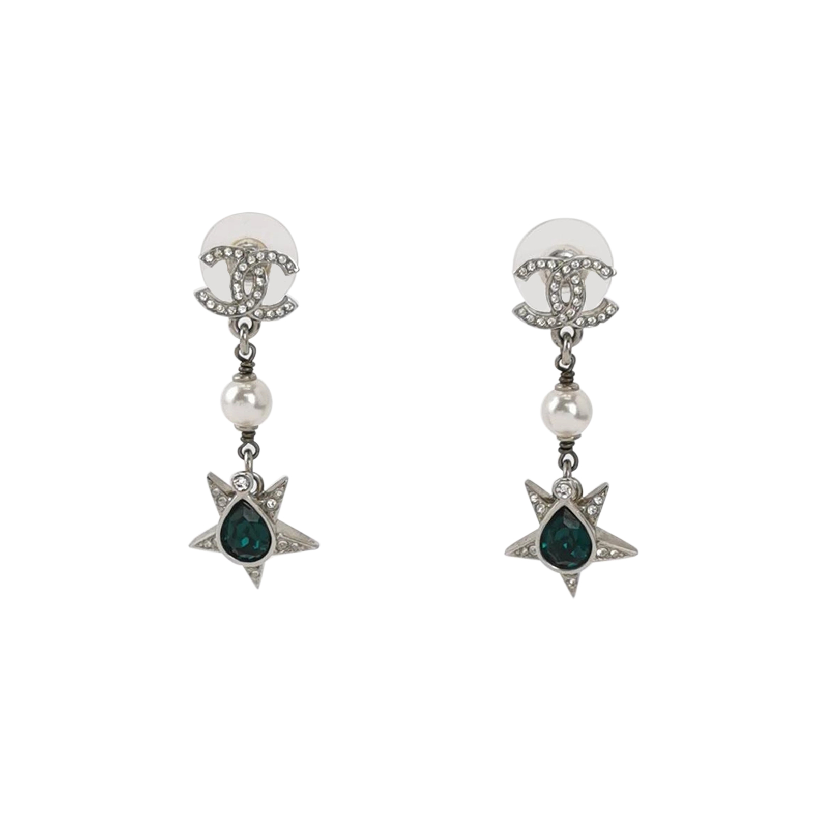 (23P)仿水晶仿珍珠双C Logo吊坠耳钉