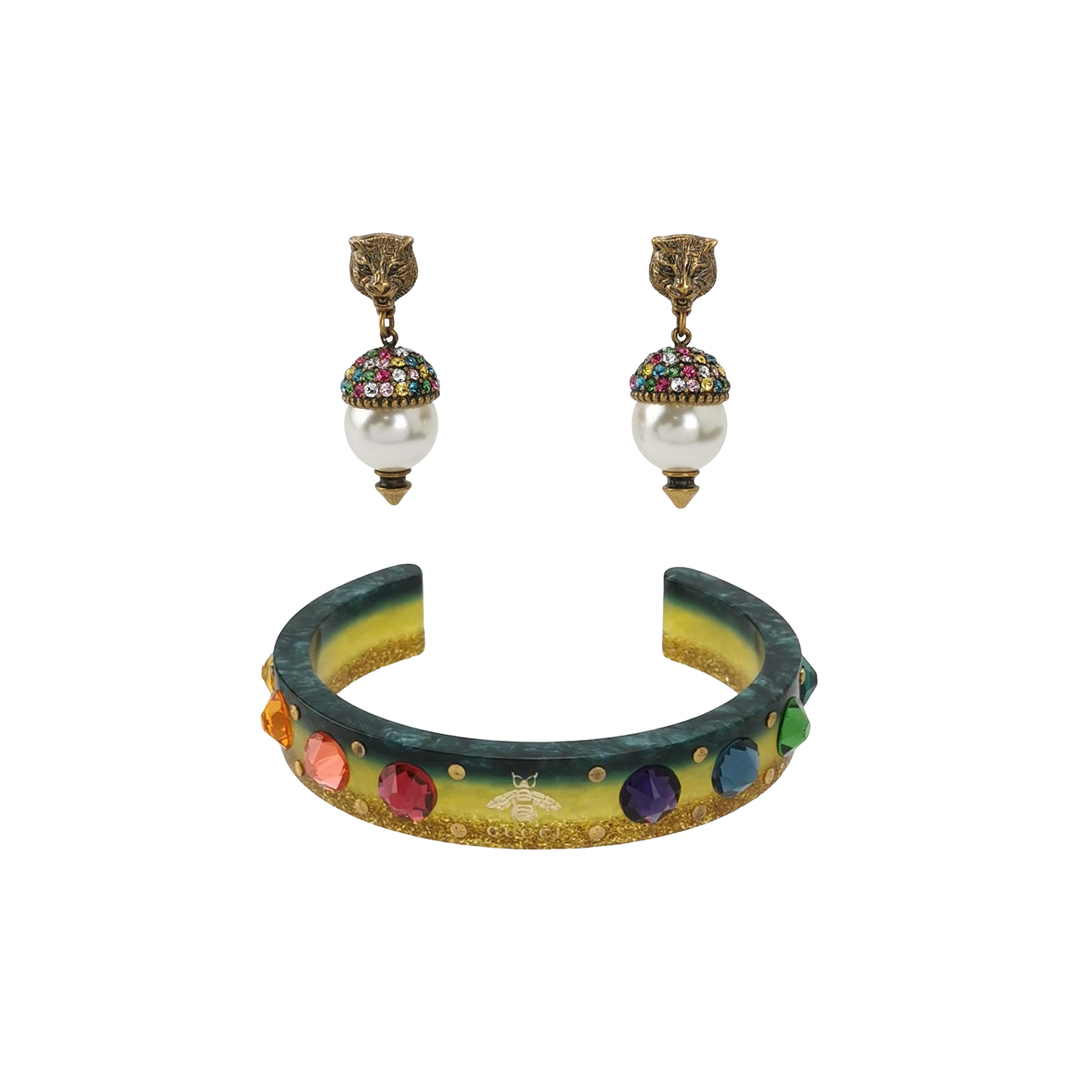 仿水晶仿珍珠字母logo首饰套件