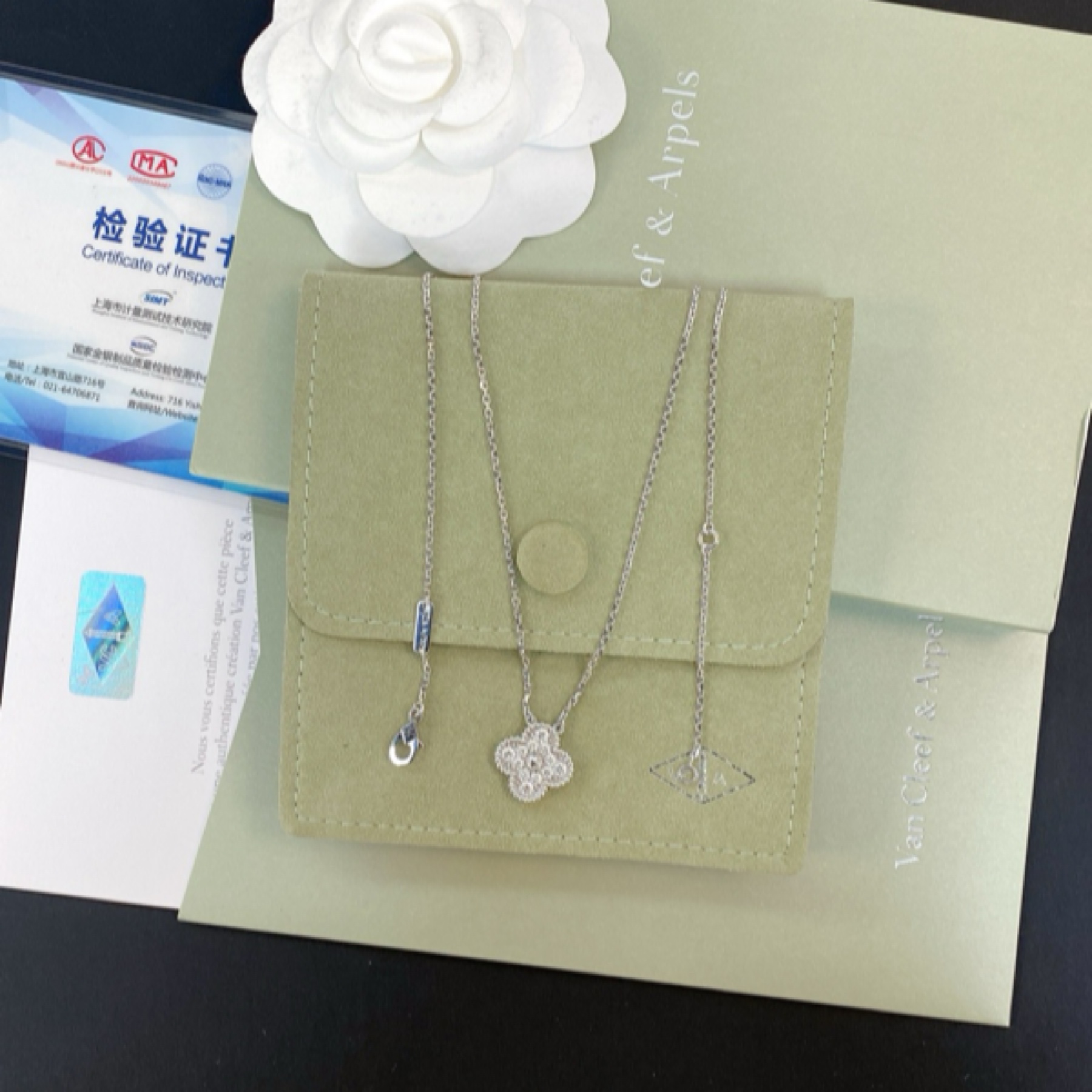 Vintage Alhambra18K白金钻石项链