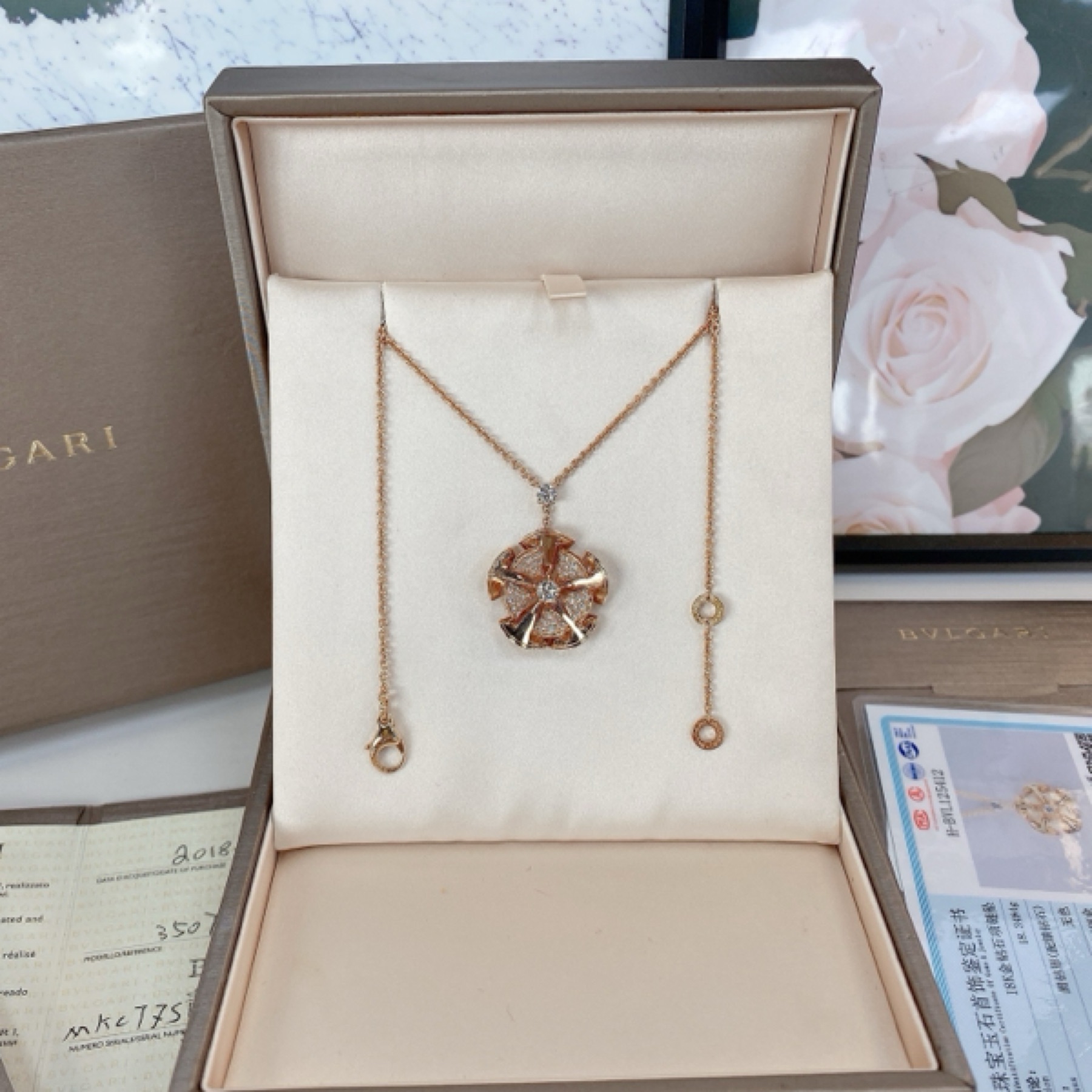 Divas' Dream18K玫瑰金钻石扇子项链