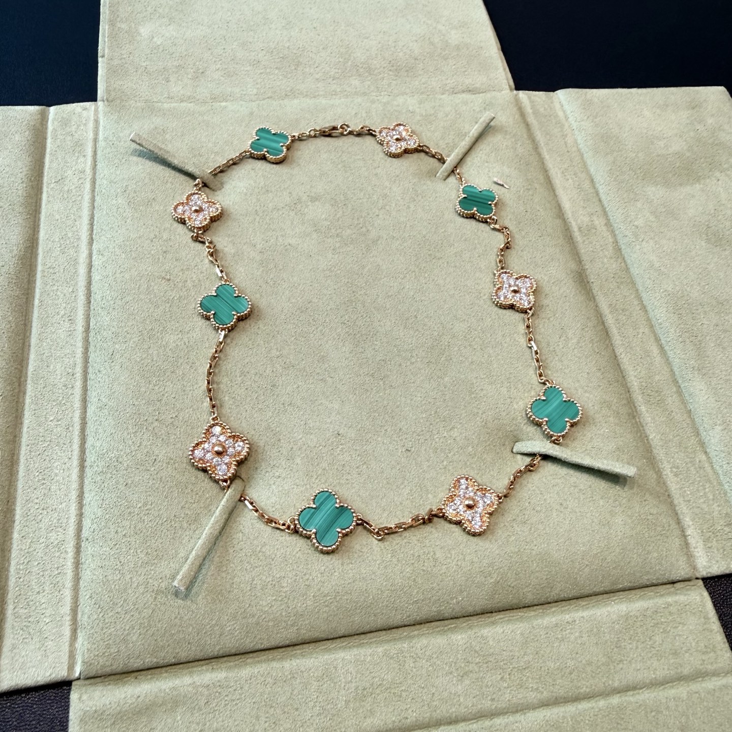 Vintage Alhambra18K黄金孔雀石钻石十花项链
