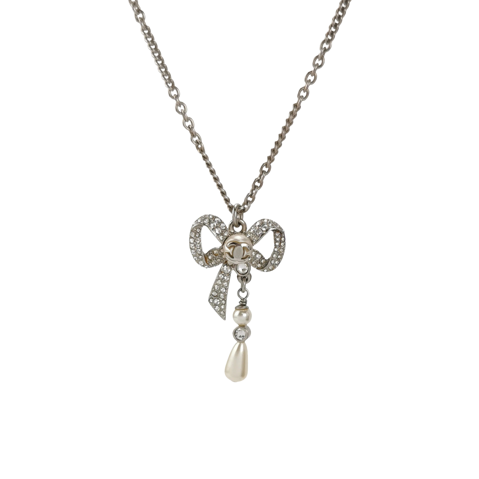 (20A)仿珍珠仿水晶蝴蝶结双C Logo项链