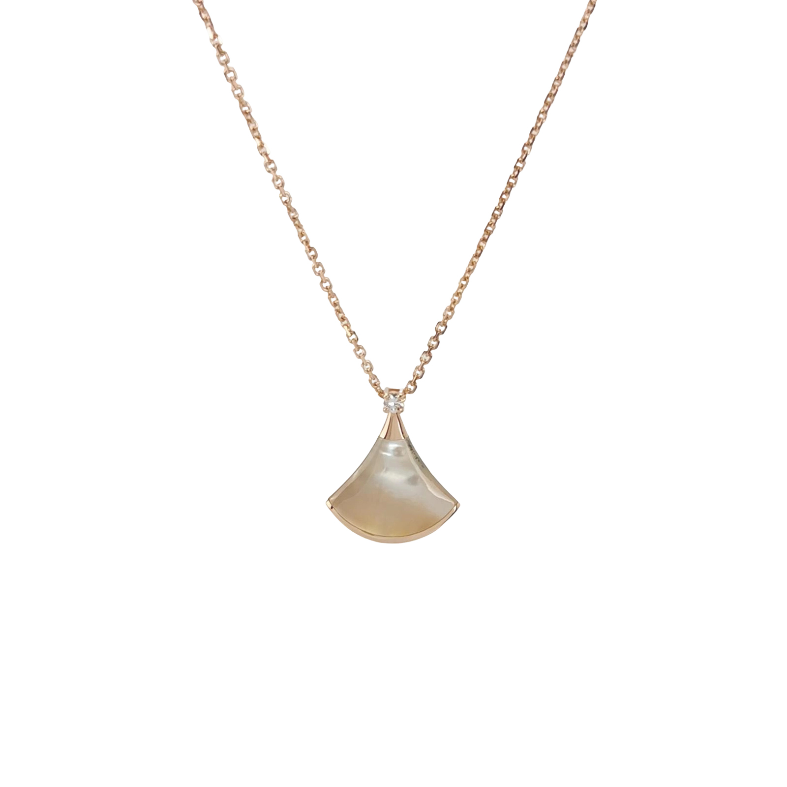 Divas' Dream18K玫瑰金钻石贝母扇子项链