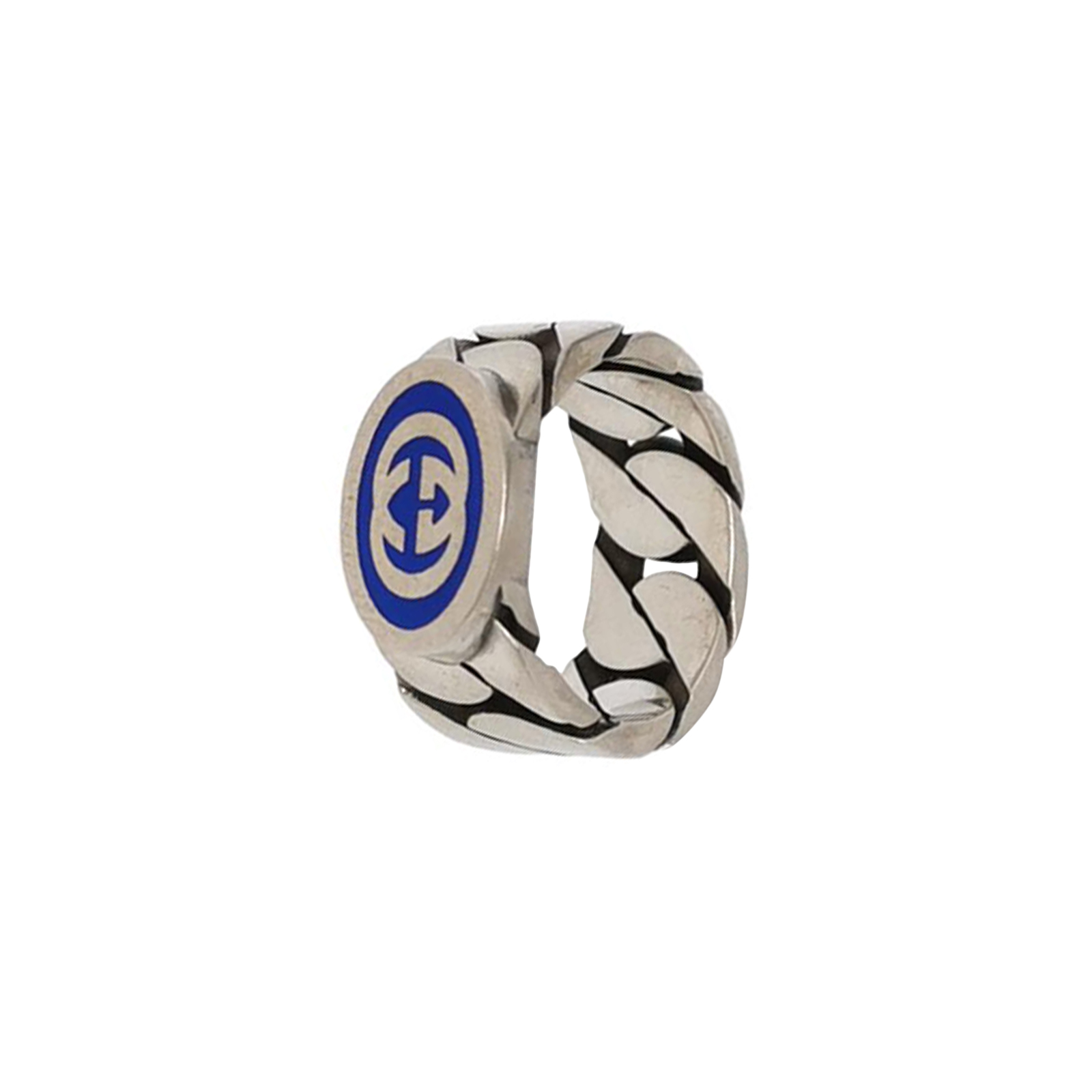 Interlocking G925银珐琅互扣式双G戒指13码