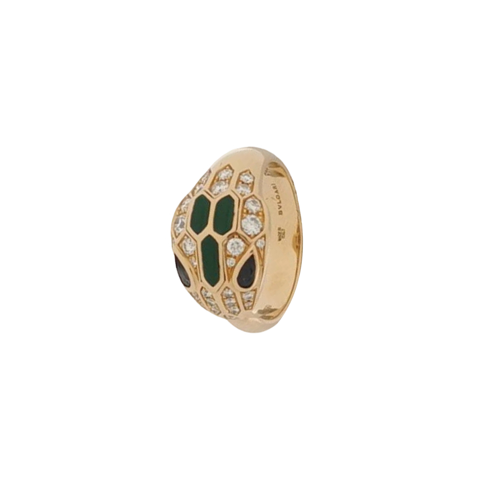 Serpenti系列18K玫瑰金钻石蓝宝石孔雀石戒指13码