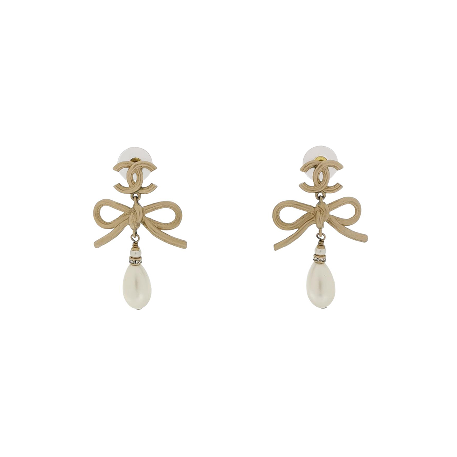 (22S)仿水晶仿珍珠双C Logo蝴蝶结耳钉