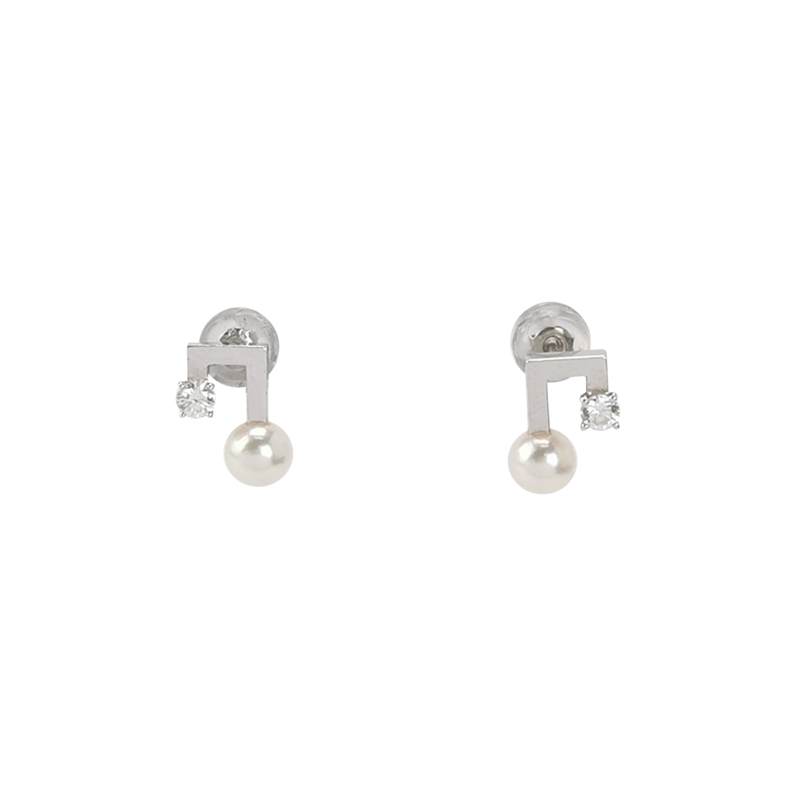 “Petit” Balance Note18K白金钻石珍珠音符耳钉