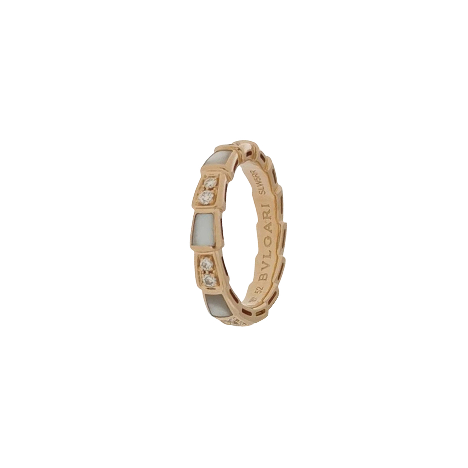 Serpenti系列18K玫瑰金钻石贝母戒指13码