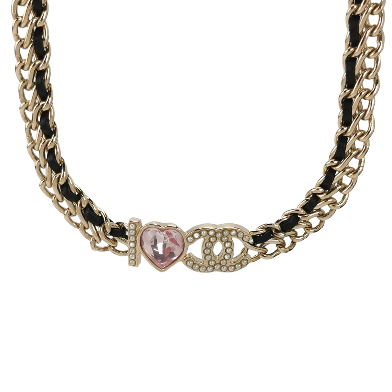 (22B)仿水晶仿珍珠皮质双C logo项链